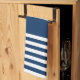 Nautical Boat Wheel, Navy Blue Stripes Tea Towel