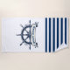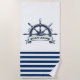 Nautical Boat Wheel, Navy Blue White Stripes Beach Towel