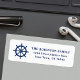 Nautical themed return address labels. This unique design features custom artwork of a ship's helm - boat wheel in navy blue on white or easily customise the text and background colour as desired. To see more designs like this, feel free to visit my store here at "Zazzle.com/Anchorisle". Thanks.