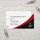 Modern nautical business card template design with a red black and white geometric design that includes a boat anchor. Designed for the boating or industrial marine industries and allows you to change the white background colour in our online design tool.