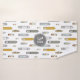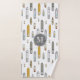 Perfect guest bathroom decor for the river camp, this bird's eye view nautical pattern custom towel set features varied size seafaring vessels on a customisable white background with custom monogram on a grey circle pendant - the pattern includes 3 cargo ships, a sailboat, a cruise ship, a paddle wheel tour boat, a yacht and a fishing boat, orientated vertically - On the River © katz_d_zynes 2019