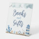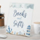 Nautical Books And Gifts Baby Shower Sign featuring a nautical theme with sea, sea shells, boats, and lighthouse artwork