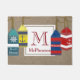 Lobster floats/bouys in assorted nautical colours and nautical accents on a faux burlap background with personalised text!
