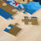 This cute and fun puzzle can be personalised with a name. It features a nautical sailor boy monkey on a wooden deck with a seagull and a crab. In the background there is a red and white lighthouse, a cute bird on a sailboat, ocean waves and a navy blue starry night sky.