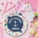 These personalised birthday party plates will be the perfect finishing touch to your nautical themed birthday party. Featuring a nautical inspired silhouette pattern and a silhouette of an anchor in the middle of each plate. Customise the text to suite your party details. Shop the entire coordinating collection for all your safari animal party needs.