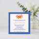 Modern and bright bridal shower invitation. Great for an ocean theme event or beach side party. Features a crab in orange with a navy blue polka dots frame. Airy and nautical look. Add your own wording.