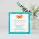 Modern and bright bridal shower invitation. Great for an ocean theme event or beach side party. Features a crab in orange with a teal polka dots frame. Airy and nautical look. Add your own wording.