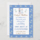 Nautical Cartoon Blue White and Gold Wedding Invitation