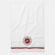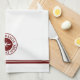Nautical Chef personalised lobster logo kitchen towel with your name and boat name. Maroon emblem with classic block text on a white background. Double lined maroon border.