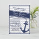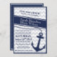Nautical chevron navy blue wedding invitation