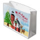 So very happy with the quality of this bag! The thickness of the paper along with the glossy finish I just love it! Can’t wait to give our pup his gifts in this awesome custom gift bag! The printing came out amazing! The black crisp clear printing on the white bag looks amazing! Very pleased with this purchase!