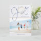 This Coastal, Nautical Christmas Joy Seashell Holiday Photo features a rustic seashell as the "o" in Joy on a background of coastal white wood, with seaside blue text. Easy to add your photo and details for a fun Christmas card!