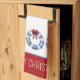 This cute coastal inspired kitchen dish towel features three nautical blue and white life preserver wreaths decorated with red bows and Christmas lights. Personalise with your choice of special holiday text.