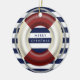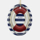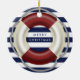 Personalised nautical Christmas ornament with lifesaver, white and blue background and customisable text Merry Christmas