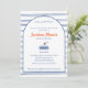 Nautical Coastal Blue Boat Stripe Baby Boy Aqiqah Invitation