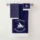Nautical Coastal Navy Blue Captain Name Sailboat Bath Towel Set