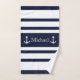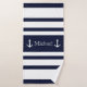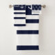 Nautical Coastal Navy Blue White Stripes Name Bath Towel Set