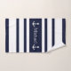 Nautical Coastal Navy Blue White Stripes Name Bath Towel Set. You can personalise by writing text (name, family name, monogram...).