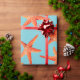 Nautical Coastal Red Orange Starfish & Cyan Blue Wrapping Paper