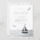 Set sail on the journey of a lifetime with this enchanting sailboat wedding invitation, gracefully navigating through serene nautical stripes in shades of bluish-grey. Embrace the timeless allure of maritime romance as you embark on your voyage together.