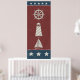 A navy blue and red star design featuring aan anchor, lighthouse and lifepreserver.