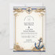 This elegant nautical wedding design features classic maritime elements including a compass rose, knotted rope, seashell details, and a timeless anchor accent. Set against a soft neutral background with navy and gold touches, the composition feels refined, coastal, and romantic without being overly themed. Perfect for seaside weddings or couples who love subtle nautical symbolism with a polished, timeless aesthetic.