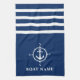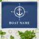 Nautical Compass Anchor Your Boat Name Navy Blue Tea Towel