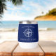 This nautical thermal wine tumbler makes a great gift for boat owners, captains, first mates, and dockside hosts who love entertaining on the water. It features a classic compass rose on a navy blue background, and customizable boat name.