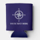 Nautical compass star navy blue and white custom Can Cooler . North East South West sign. Custom colour beverage holder. Maritime design home decor and table decorations. Personalise with custom boat name, quote or surname. Also great for themed wedding party.