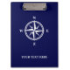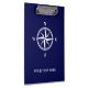 Nautical compass star navy blue and white custom clipboard . North East South West rose sign. Custom colour clip board. Maritime design accessories for home, boat, office etc. Personalise with custom boat name, quote or surname. Handy for boat captain, skipper, sailor etc.