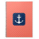 Nautical Coral Polka Dot Pattern Navy Blue Anchor Notebook