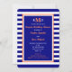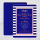 This nautical couples coed wedding shower invitation is featured in navy blue, white and coral. Navy and white stripes are the backdrop for a navy background edged in white and coral on which your monogram can be placed along with all your couples wedding shower details. This is the perfect invite for a nautical themed shower. Copyright henishouseofpaper