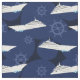 Nautical Cruise Ships Modern Blue White Pattern Fabric