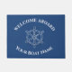 this doormat features a classic nautical theme with a navy blue background, an anchor, and a ship's wheel. You can personalise it with your boat's name, making it a unique and welcoming touch for your entryway. The doormat is durable and functional, designed to keep dirt and debris outside while adding a decorative flair to your doorstep. Whether you're a boating enthusiast or simply love nautical decor, this custom doormat is a great way to showcase your personal style. Personalise your space with this charming and practical doormat that captures the spirit of the sea.