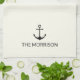 Nautical Custom Boat Name black anchor ivory Tea Towel