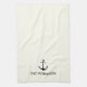 Nautical Custom Boat Name black anchor ivory kitchen towel.