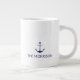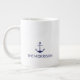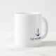 Nautical Custom Boat Name navy blue anchor white Giant Coffee Mug.