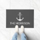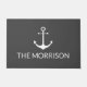Nautical Custom Boat Name white anchor charcoal grey Doormat.