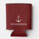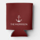 Nautical Custom Boat Name white anchor maroon burgundy Can Cooler.