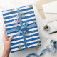 Customise this Stylish Modern Nautical Happy Birthday Wrapping Paper, Blue and white striped design with anchors, set as a template for an easy customisation. Replace sample name with your name or your family name.