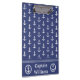 This clipboard is dark blue and white. Its pattern is white boat anchors. On the front at the bottom you can personalise your clipboard with your name or other desired text. A white boat anchor inside of a circle is on either side of the text.