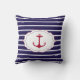 Nautical Dark Blue White Stripes Red Anchor Cushion