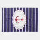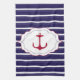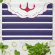 Nautical Dark Blue White Stripes Red Anchor Tea Towel