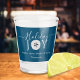 Modern Nautical Dark Teal Blue, Grey, White Holiday Joy Sand dollar Christmas Shot Glasss