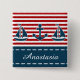 Nautical design with sailing boat and anchor decoration on red and white striped background