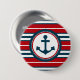 Nautical design with anchor decoration in round shape on red, blue and white striped background