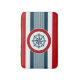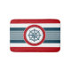 Nautical design with compass decoration in round shape on blue, red and white striped background