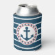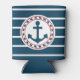 Nautical design with anchor decoration in round shape on blue and white striped background