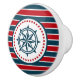 Nautical design with compass decoration in round shape with stars on red, blue and white striped background
