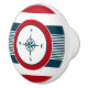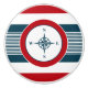 Nautical design with compass decoration in round shape on blue, red and white striped background